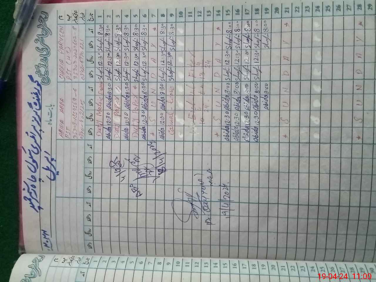 | CNIC | Full Name | Designation | R/C | Absence During Last Calender Month |