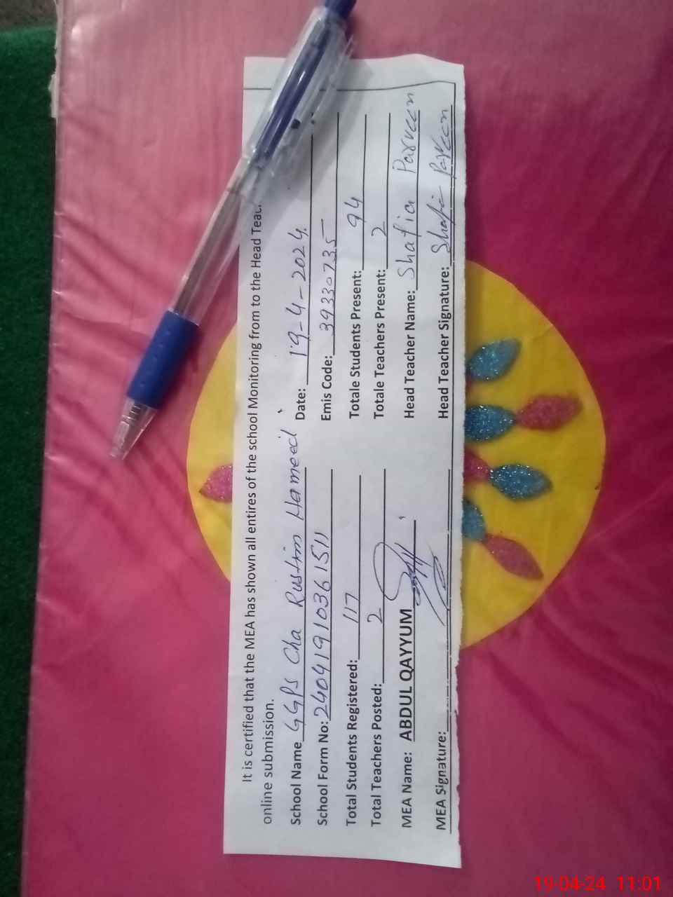 | Certified that this School was Inspected by the Undersigned MEA/DMO Today and the Information Stated Above is as Per Record. | |||||