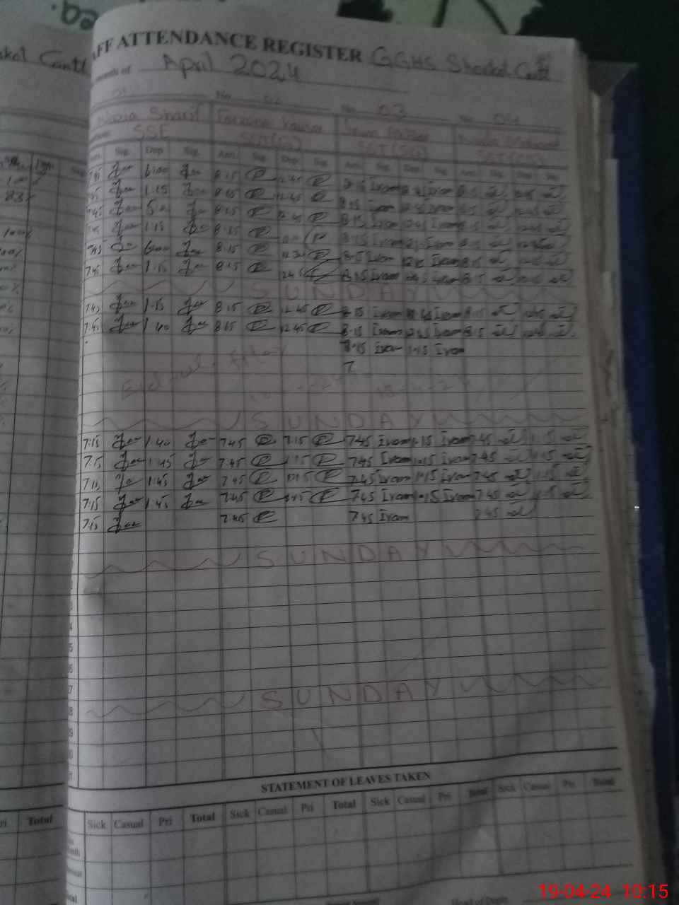 | 31**** | Na**** Ka**** | Contract | 31 | 0 | 0 | 31 | 0 | 0 | 0 | 0 | 0 | Absent (Un-Authorized) | |