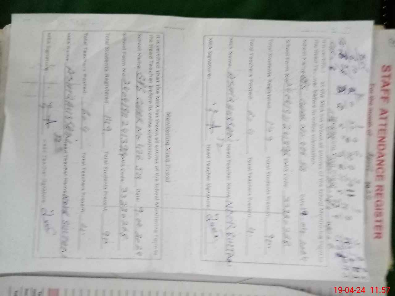 | Attendance Register | Head Teacher | MEA with School | Visit Proof |