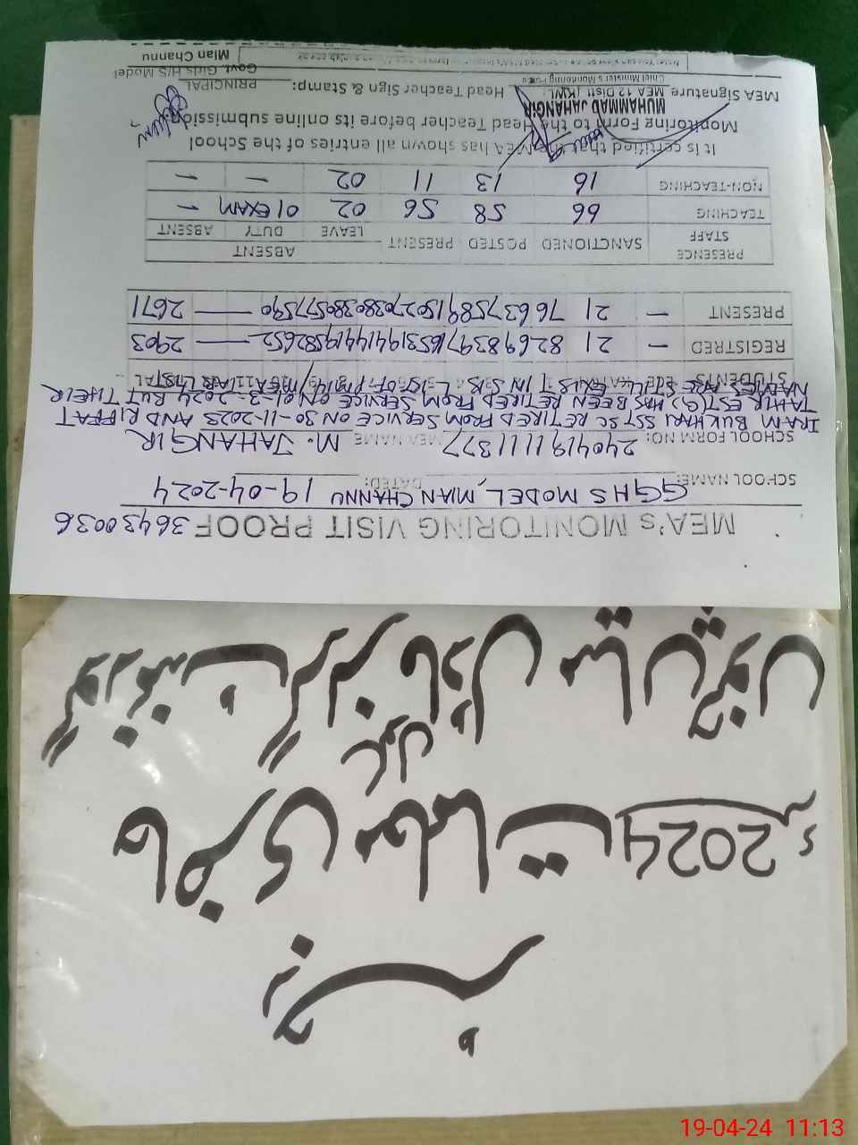 | Certified that this School was Inspected by the Undersigned MEA/DMO Today and the Information Stated Above is as Per Record. | |||||