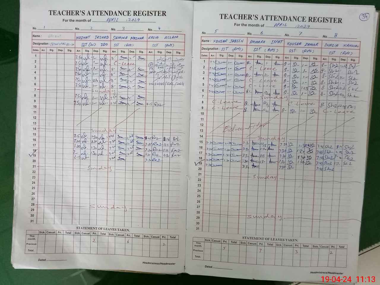| CNIC | Full Name | Designation | R/C | Absence During Last Calender Month |