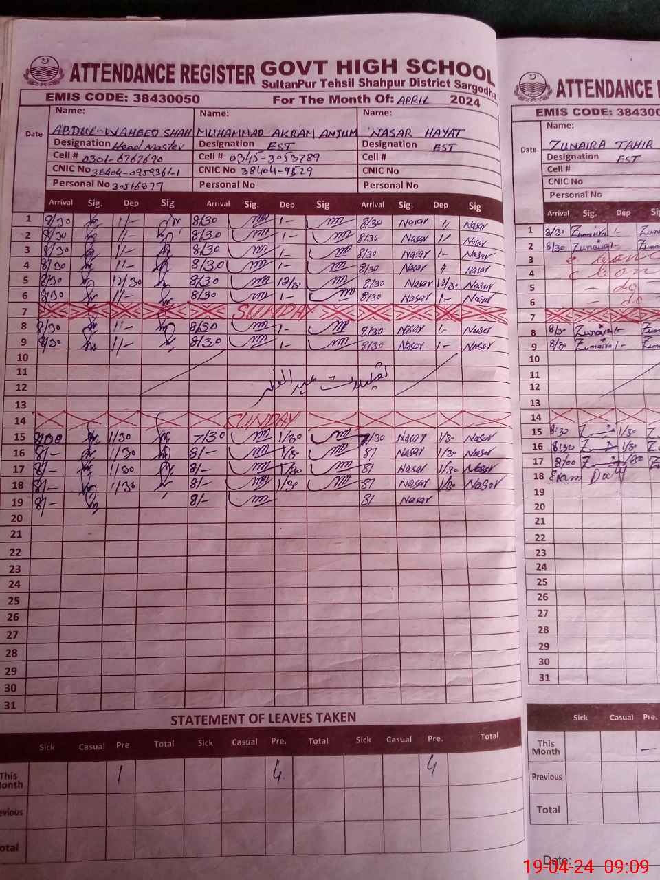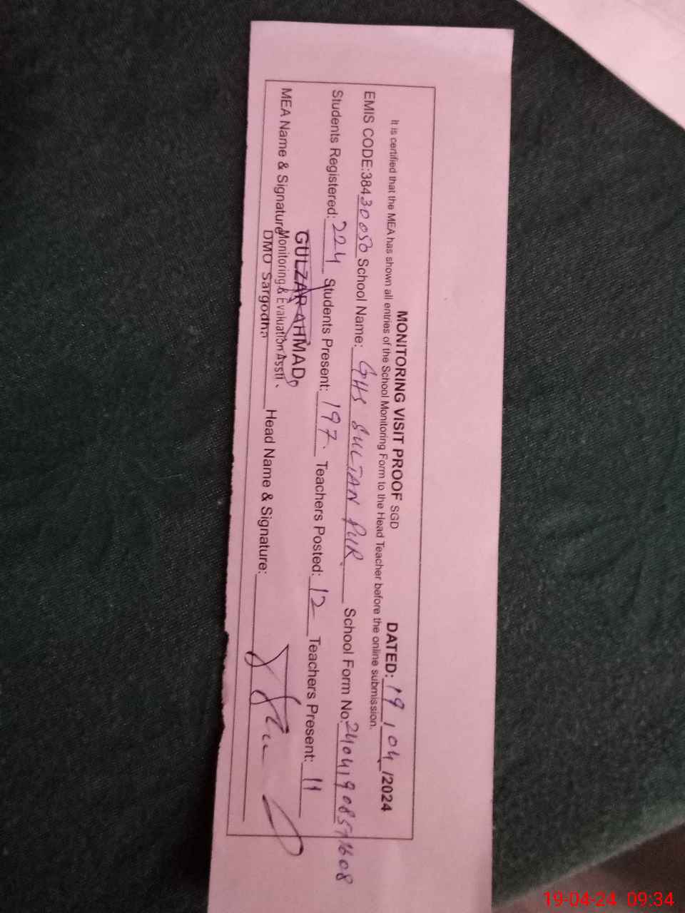 | EMIS Code: 38430050 | Name of School: GHS SULTAN PUR | |||