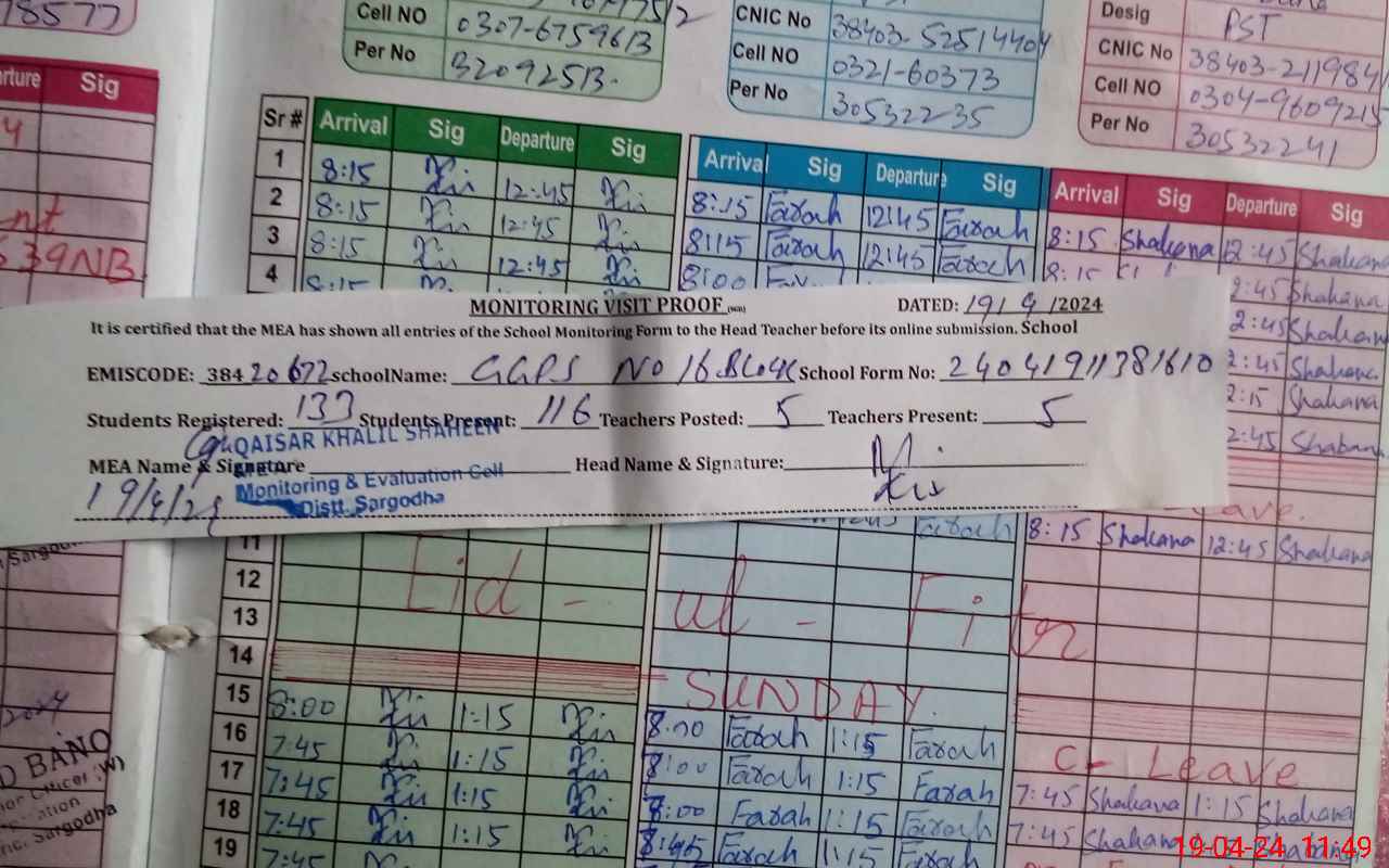 | EMIS Code: 38420672 | Name of School: GGPS MC BLOCK NO.16 SARGODHA | |||