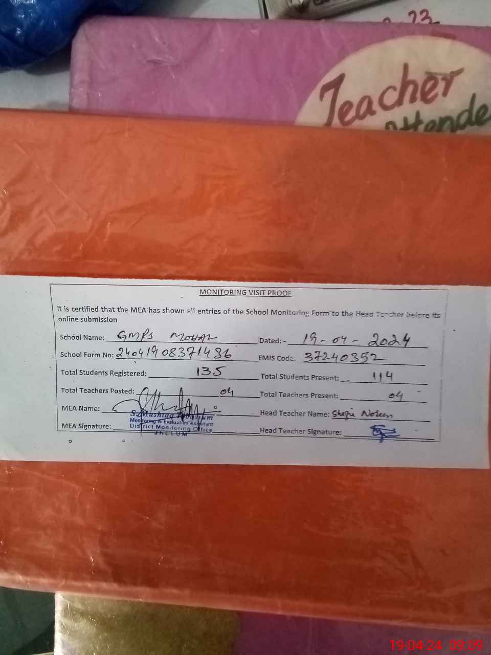 | EMIS Code: 37240352 | Name of School: GMPS MOHAL | |||