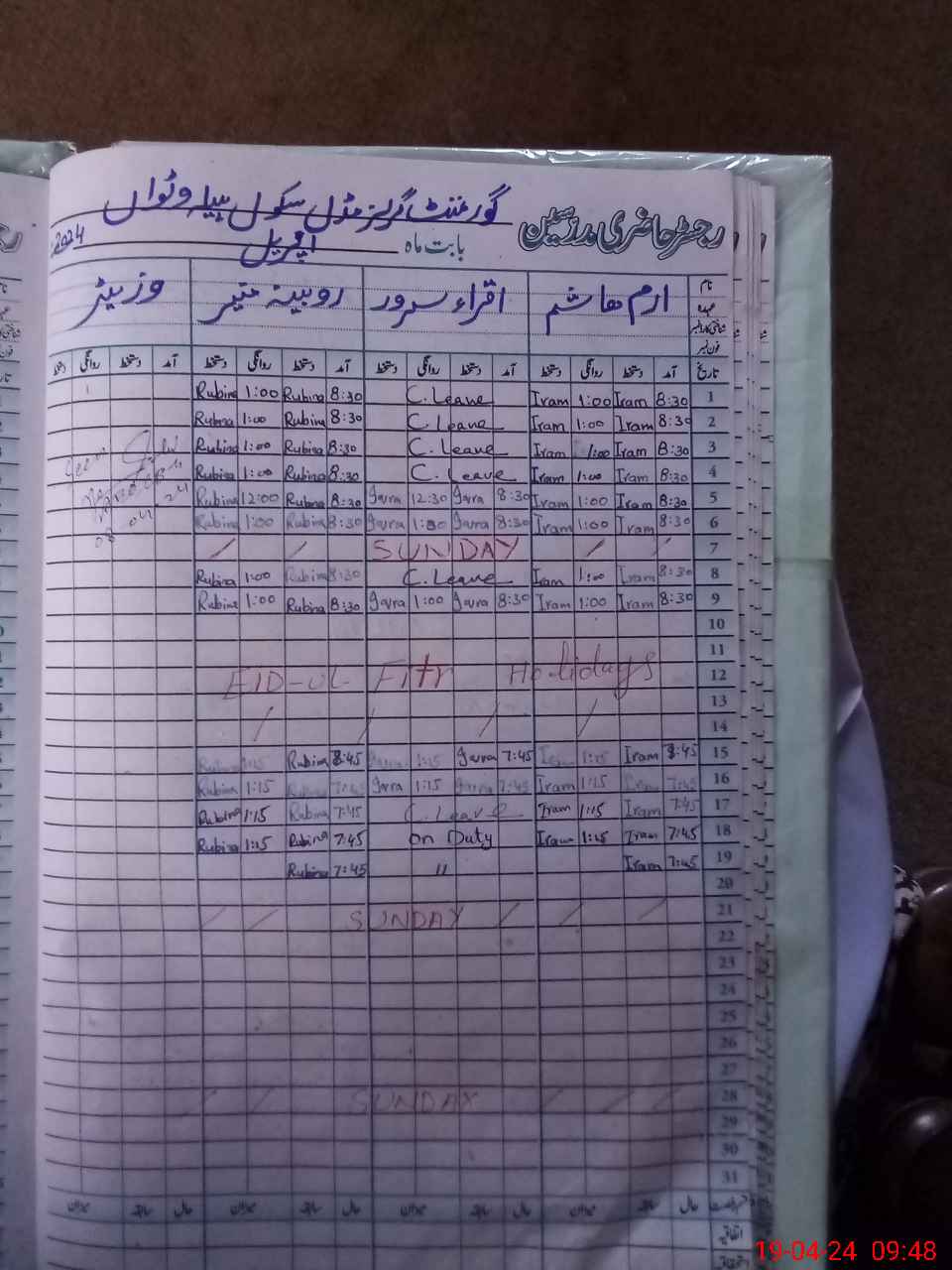 | Leave | Duty | Absent | Maternity | Medical | Ex- Pak |
