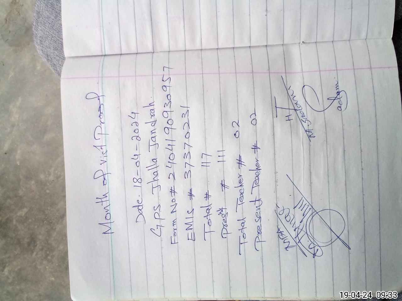 | EMIS Code: 37370231 | Name of School: GPS JHELLA JANDRAH | |||
