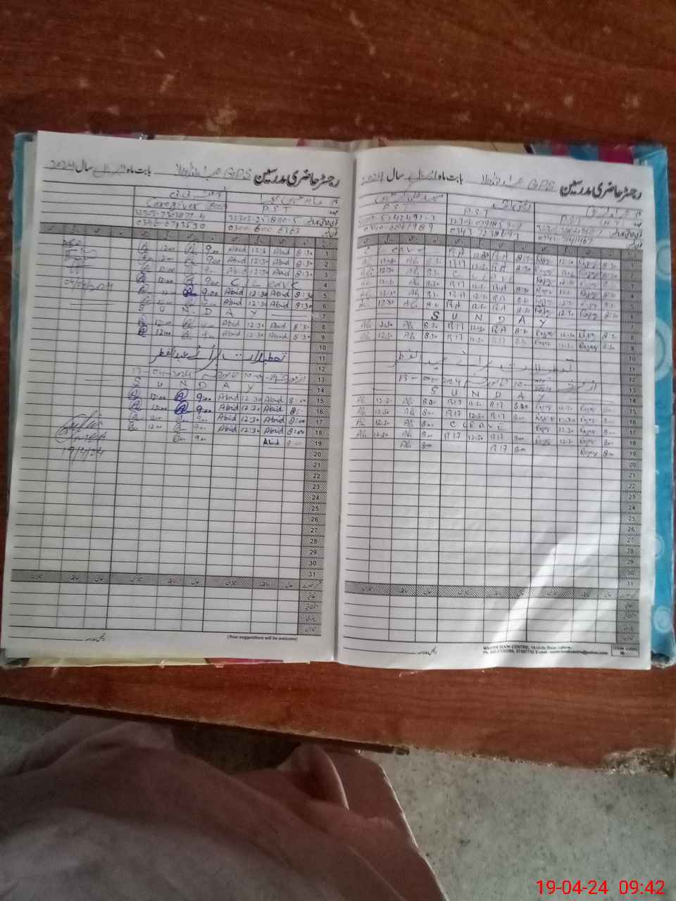 | CNIC | Full Name | Designation | R/C | Absence During Last Calender Month |