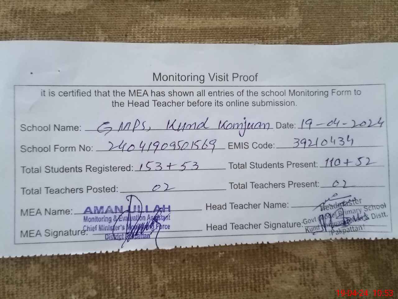 | EMIS Code: 39210434 | Name of School: GMPS KUND KANJUAN | |||