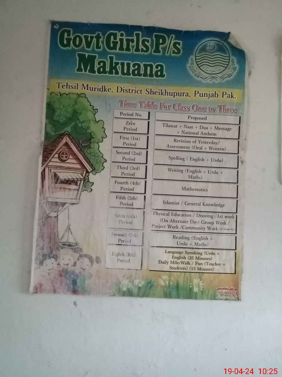 | District: SHEIKHUPURA | Tehsil: MURIDKE | Markaz: KALA KHATAI-FEMALE | Level: Primary | |