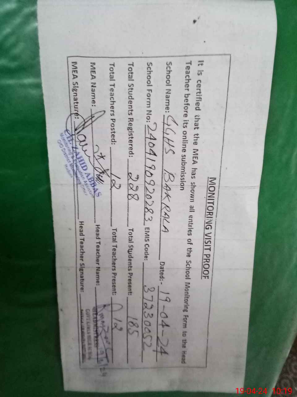 | EMIS Code: 37230052 | Name of School: GGHS BAKRALA | |||