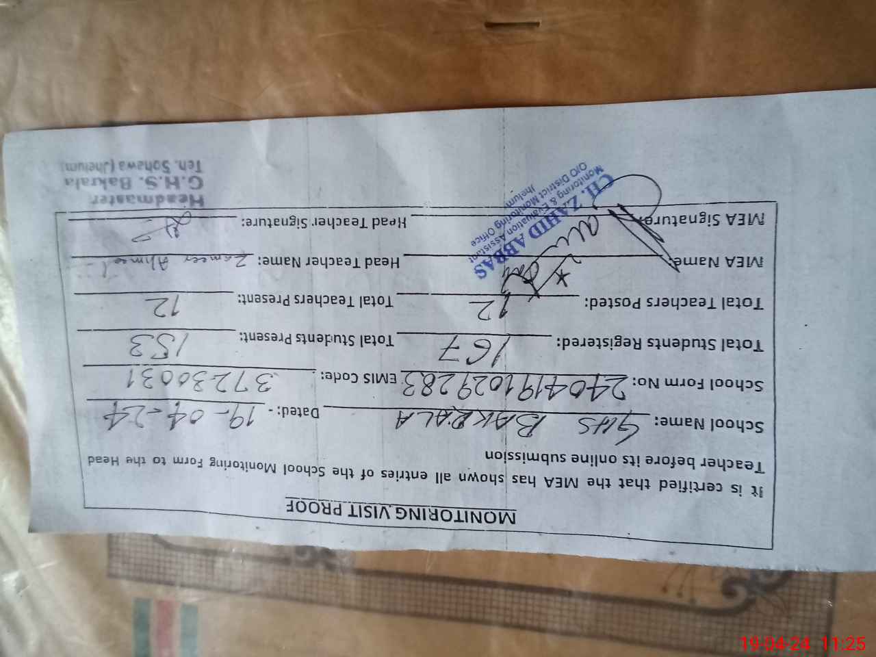 | EMIS Code: 37230031 | Name of School: GHS BAKRALA | |||