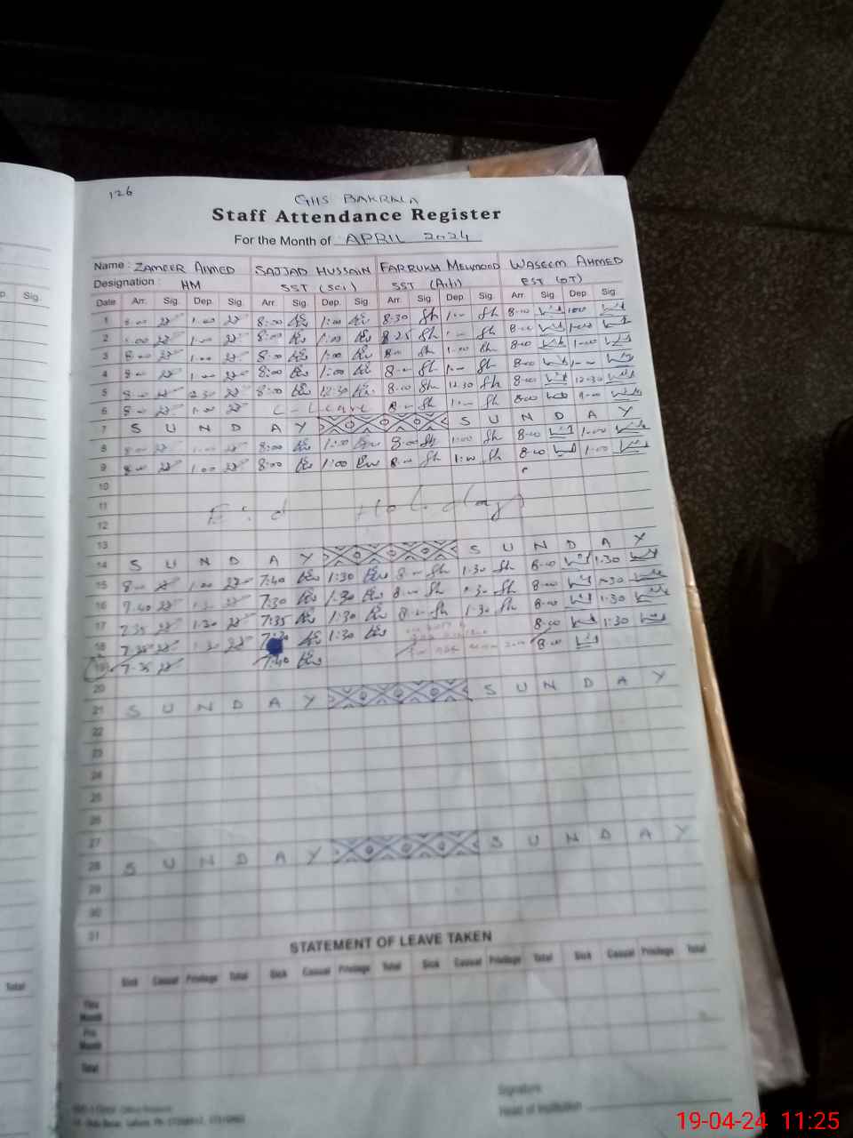| 37**** | Fa**** Me**** | 5 | 1 | 0 | 0 | 0 | 0 | 0 | 0 | 0 | 0 | 0 | Exam Duty |