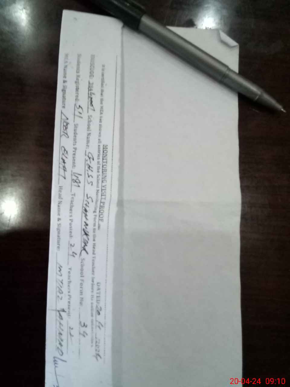 | Attendance Register | Head Teacher | MEA with School | Visit Proof |