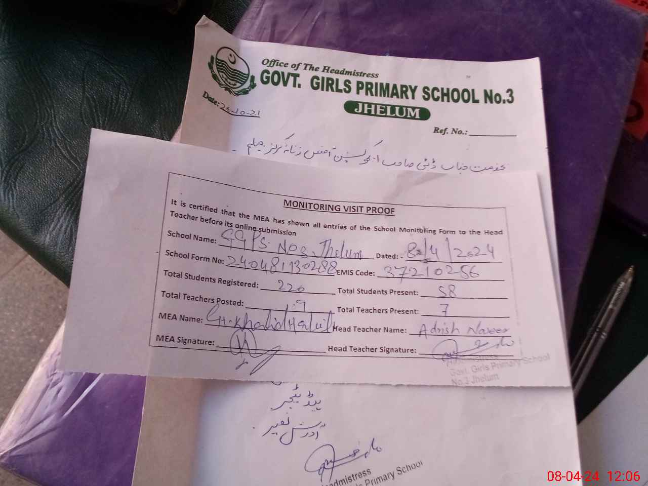 | EMIS Code: 37210256 | Name of School: GGPS NO. 3 JEHLUM | |||