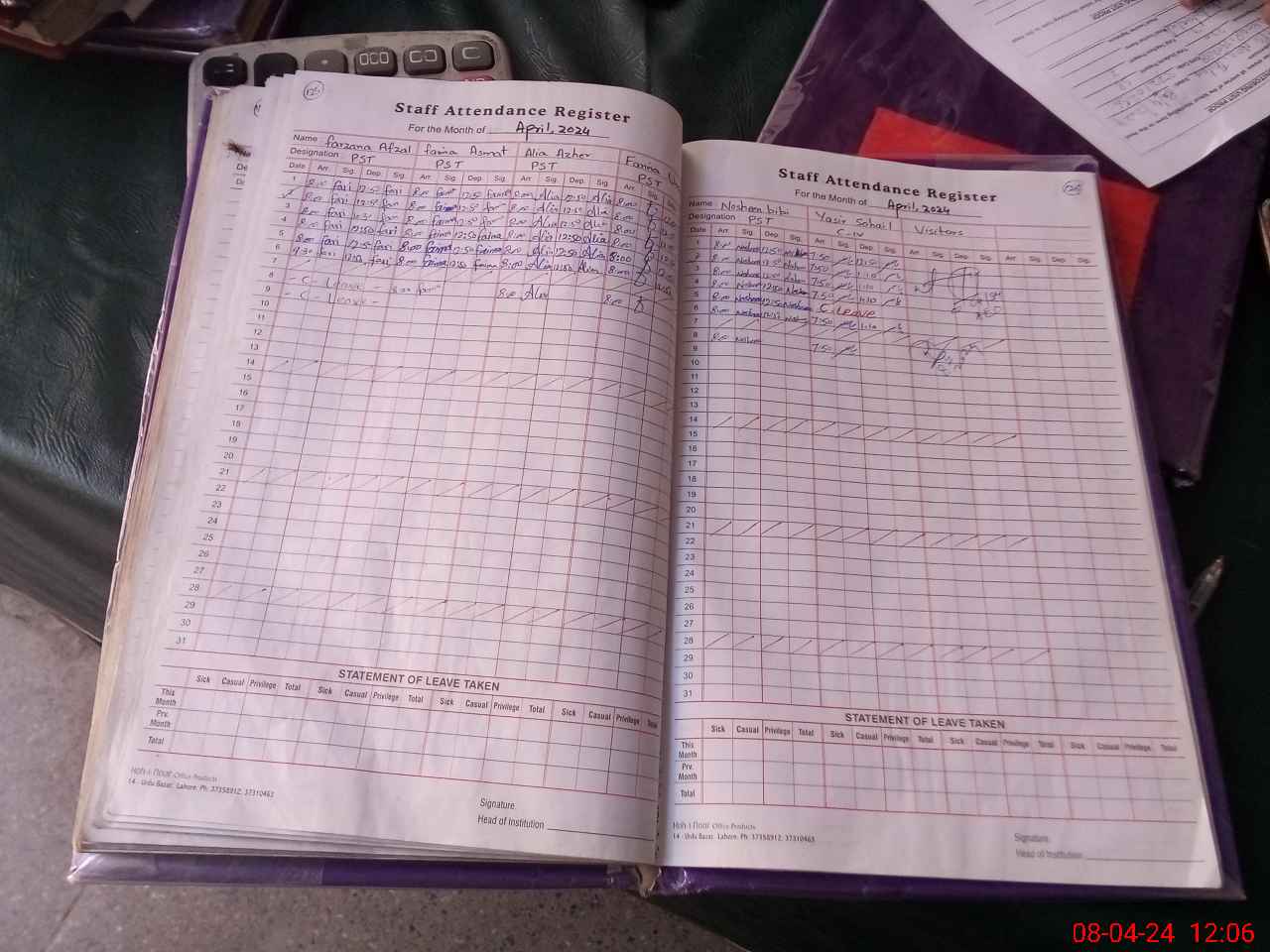 | Leave | Duty | Absent | Maternity | Medical | Ex- Pak |