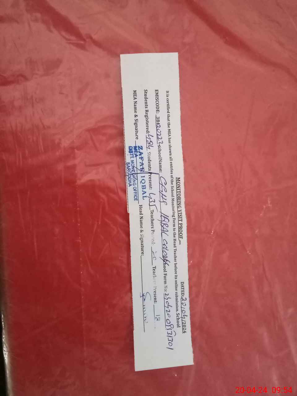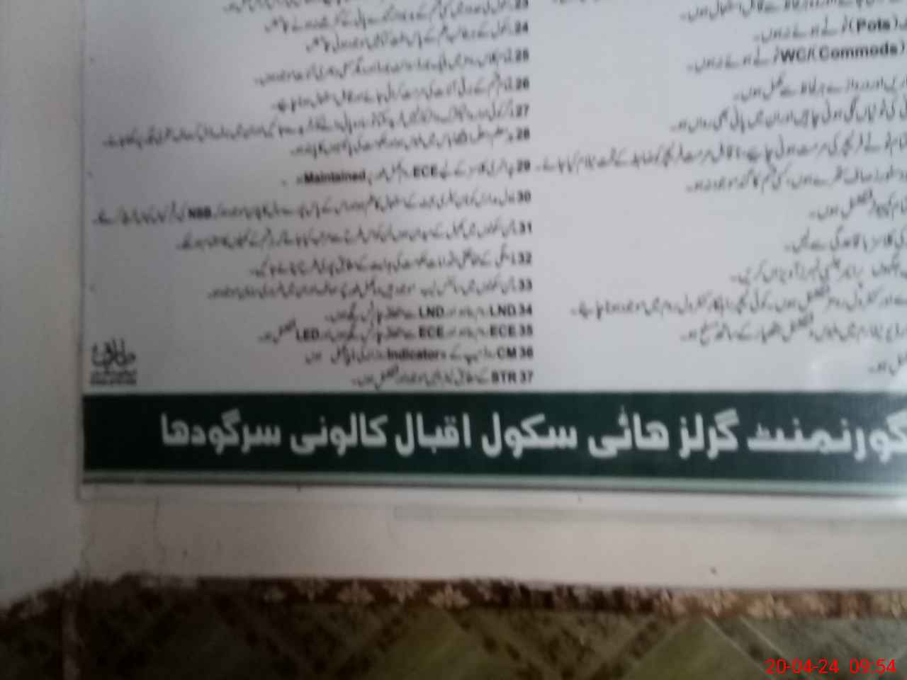 | EMIS Code: 38420222 | Name of School: GGHS IQBAL COLONY SARGODHA | |||