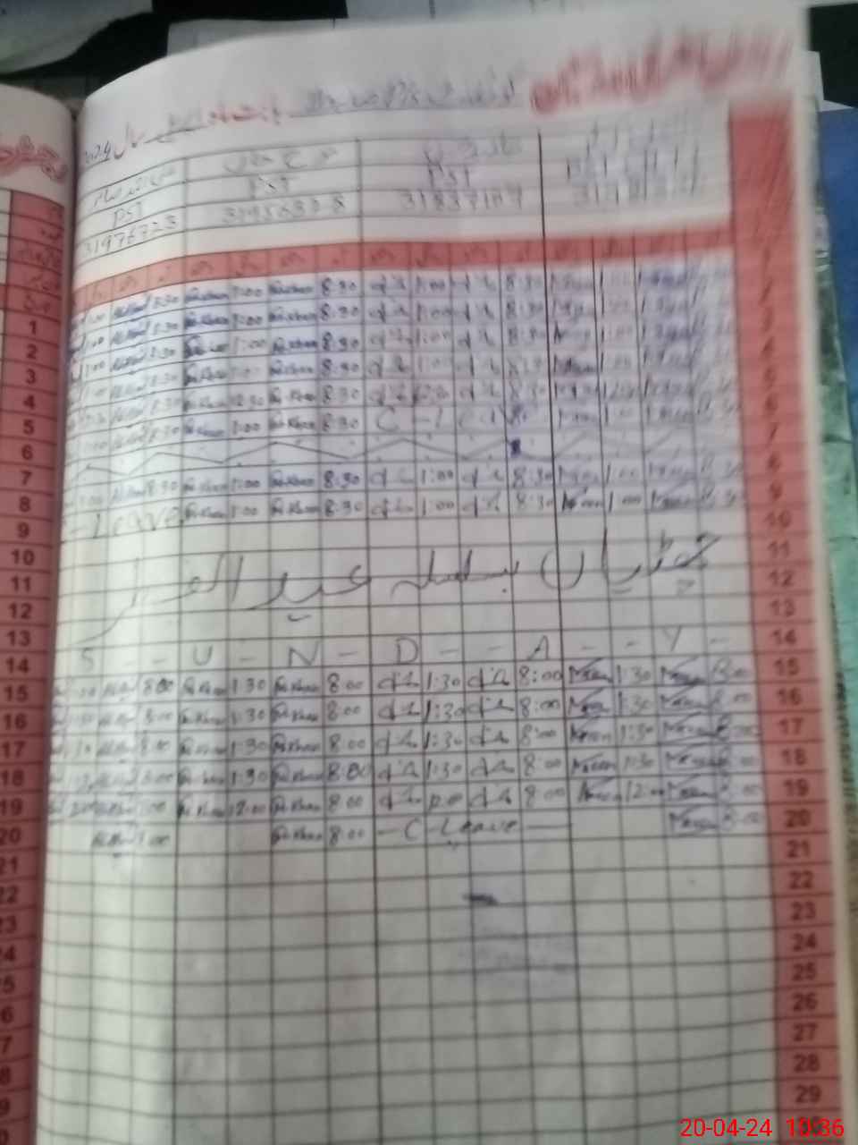| CNIC | Full Name | Designation | R/C | Absence During Last Calender Month |