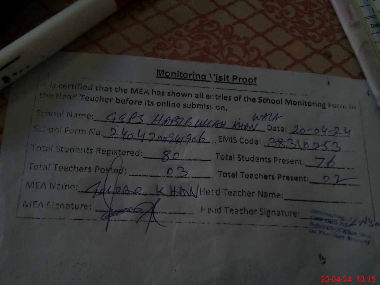| EMIS Code: 38310253 | Name of School: GGPS HABIB ULLLAH KHAN WALA | |||