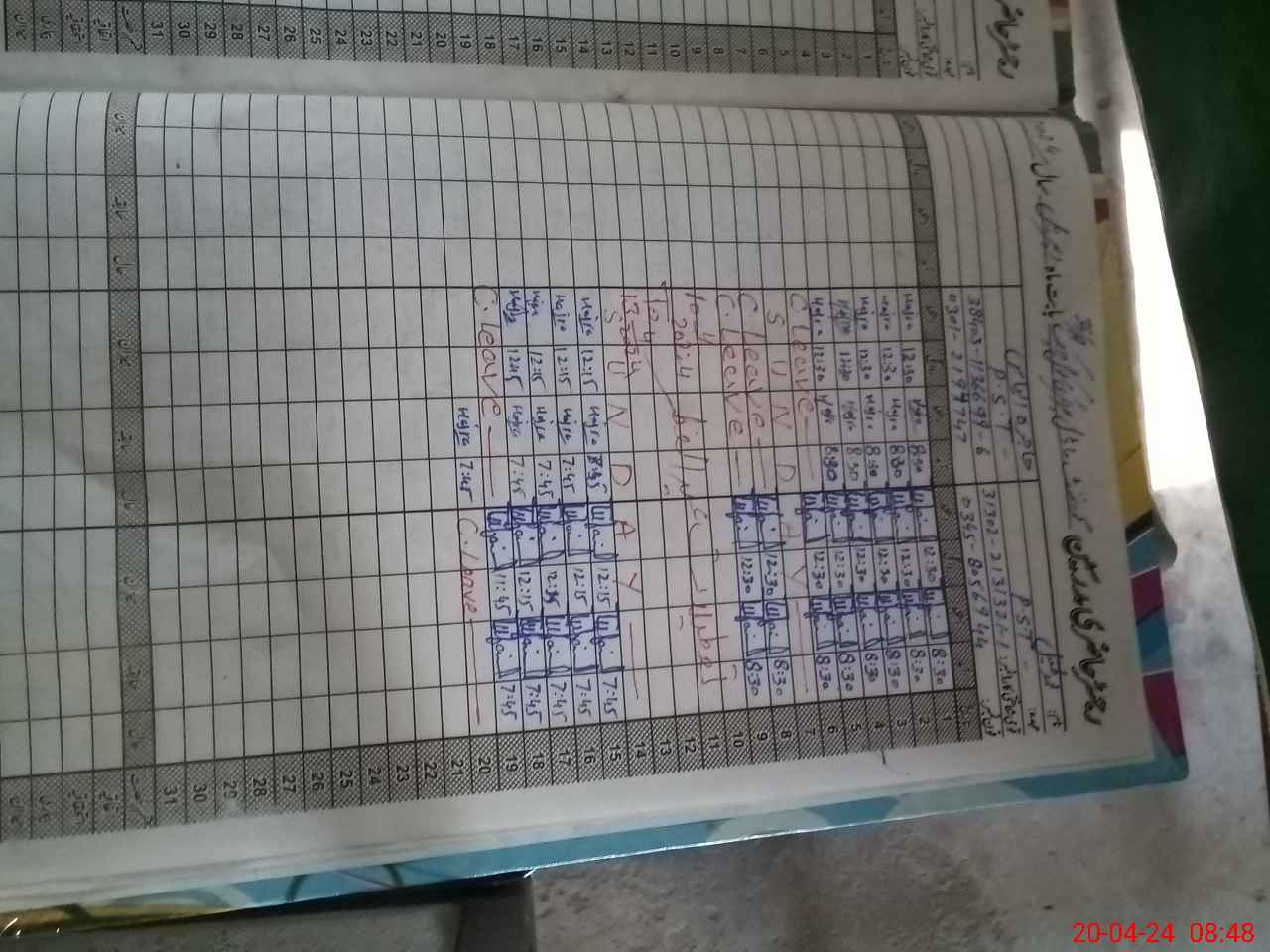 | Leave | Duty | Absent | Maternity | Medical | Ex- Pak |