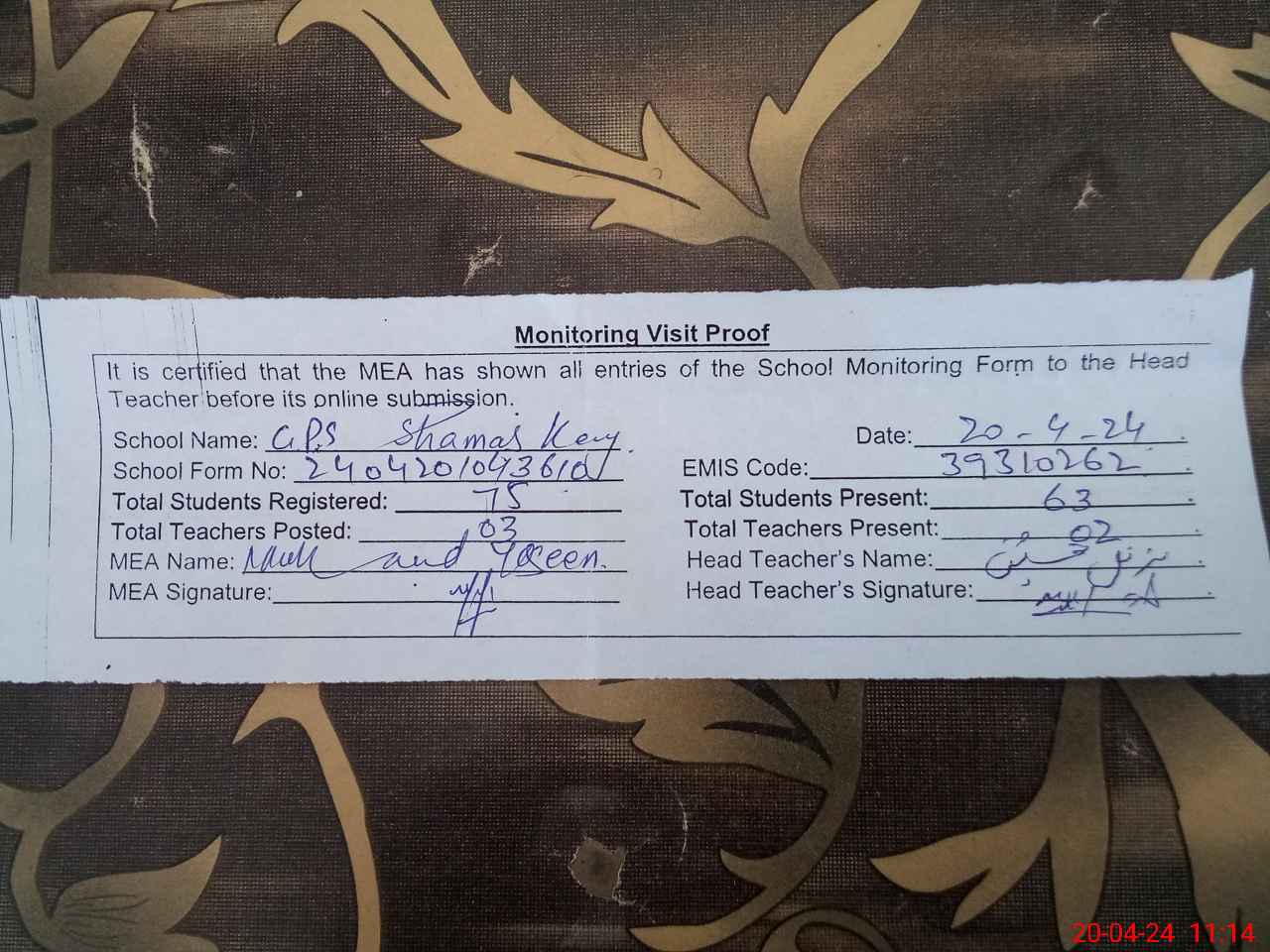 | EMIS Code: 39310262 | Name of School: GPS SHAMAS KAY | |||