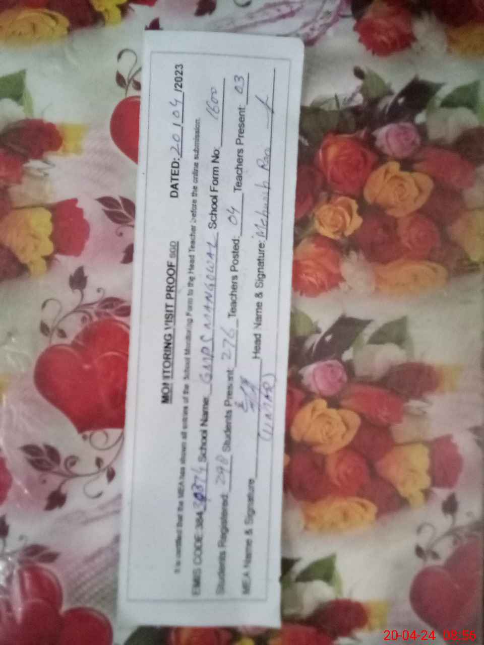 | Attendance Register | Head Teacher | MEA with School | Visit Proof |
