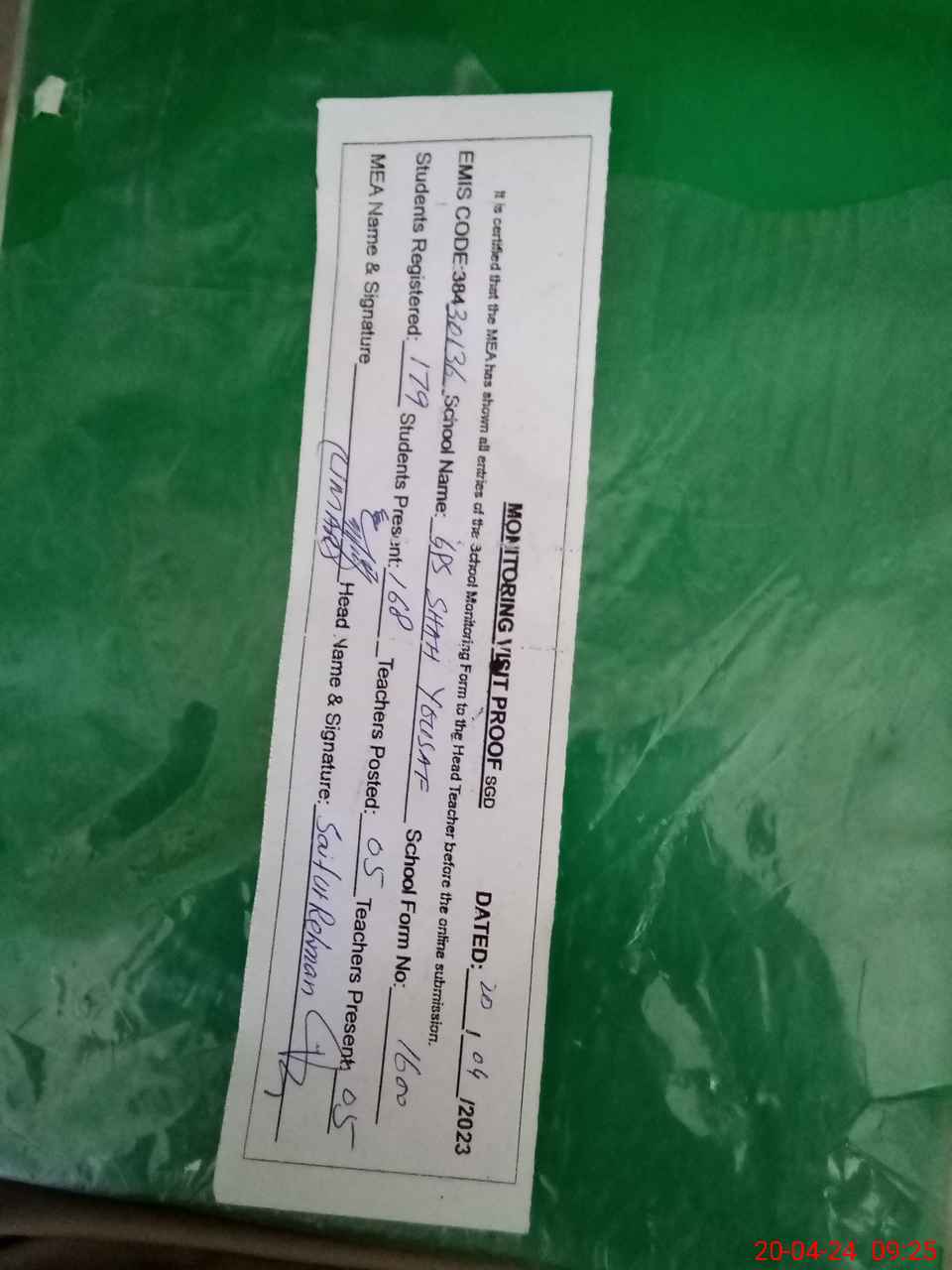 | EMIS Code: 38430136 | Name of School: GPS SHAH YOUSAF | |||