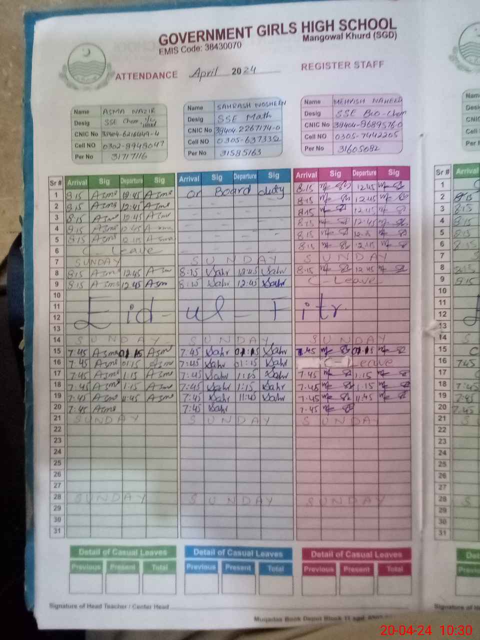| Name: AS**** NA**** Designation: (School Headmaster's/Headmistress's) SSE (Science) Phone/Cell Number: 03**** |