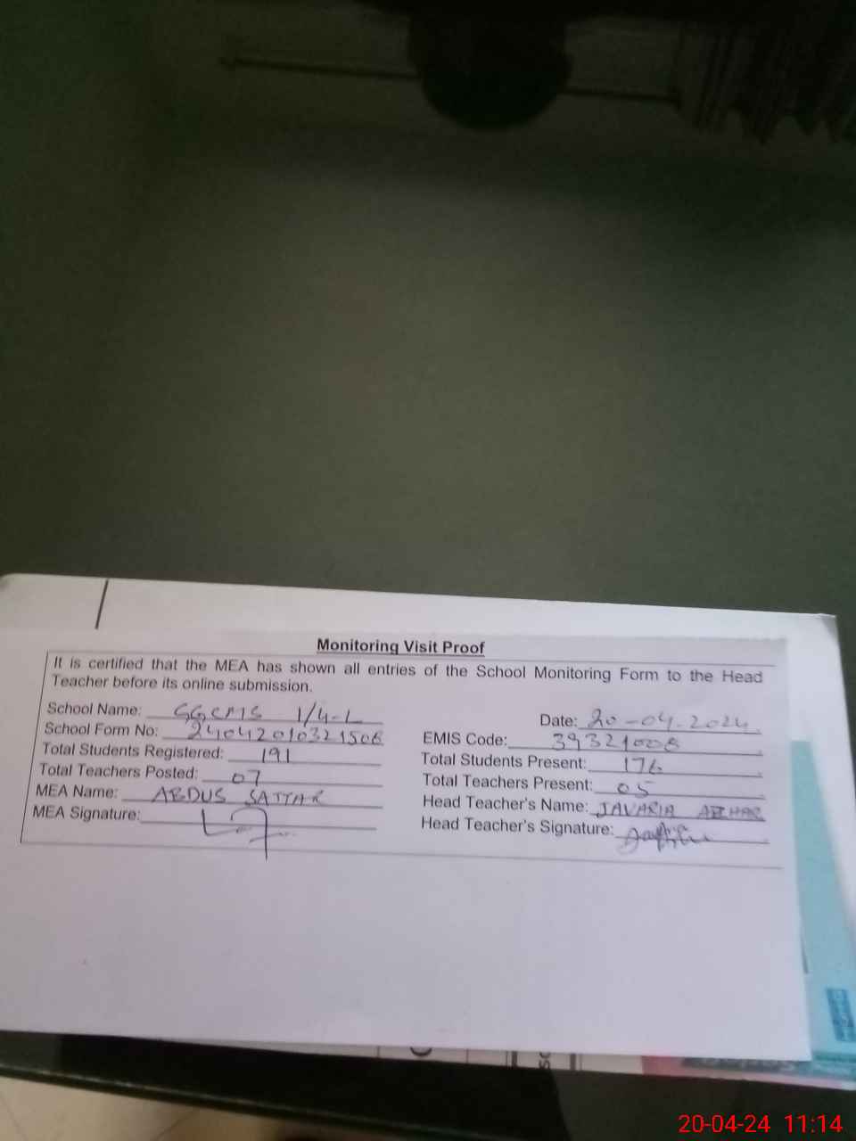 | Name: SH**** AK**** Designation: (School Headmaster's/Headmistress's) S.S.T.(Science) Phone/Cell Number: 03**** |