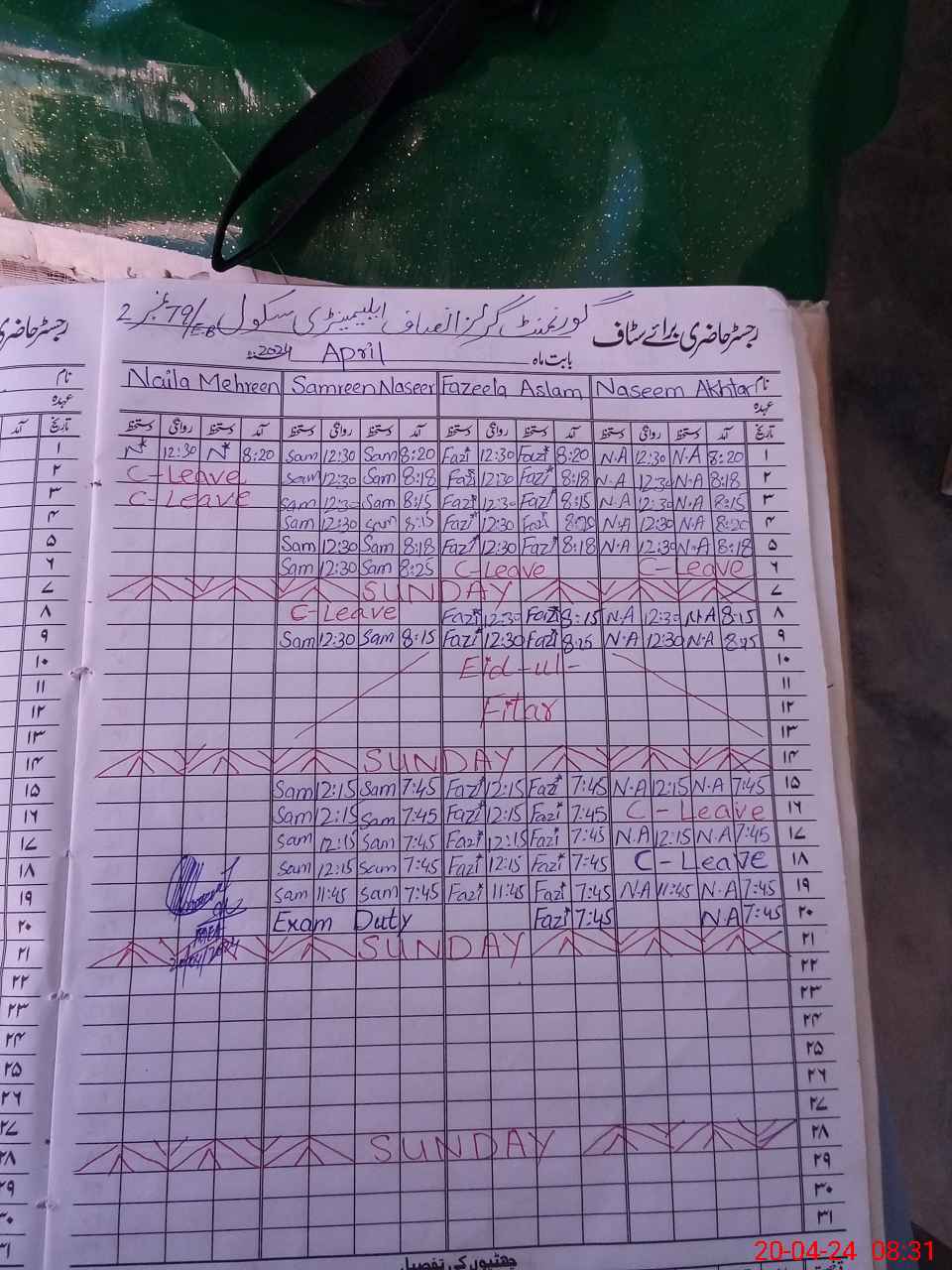 | 36**** | Sa**** Na**** | PST | Regular | 0 | 1 | 0 | 0 | 0 | 0 | 0 | 0 | 0 | Exam Duty |