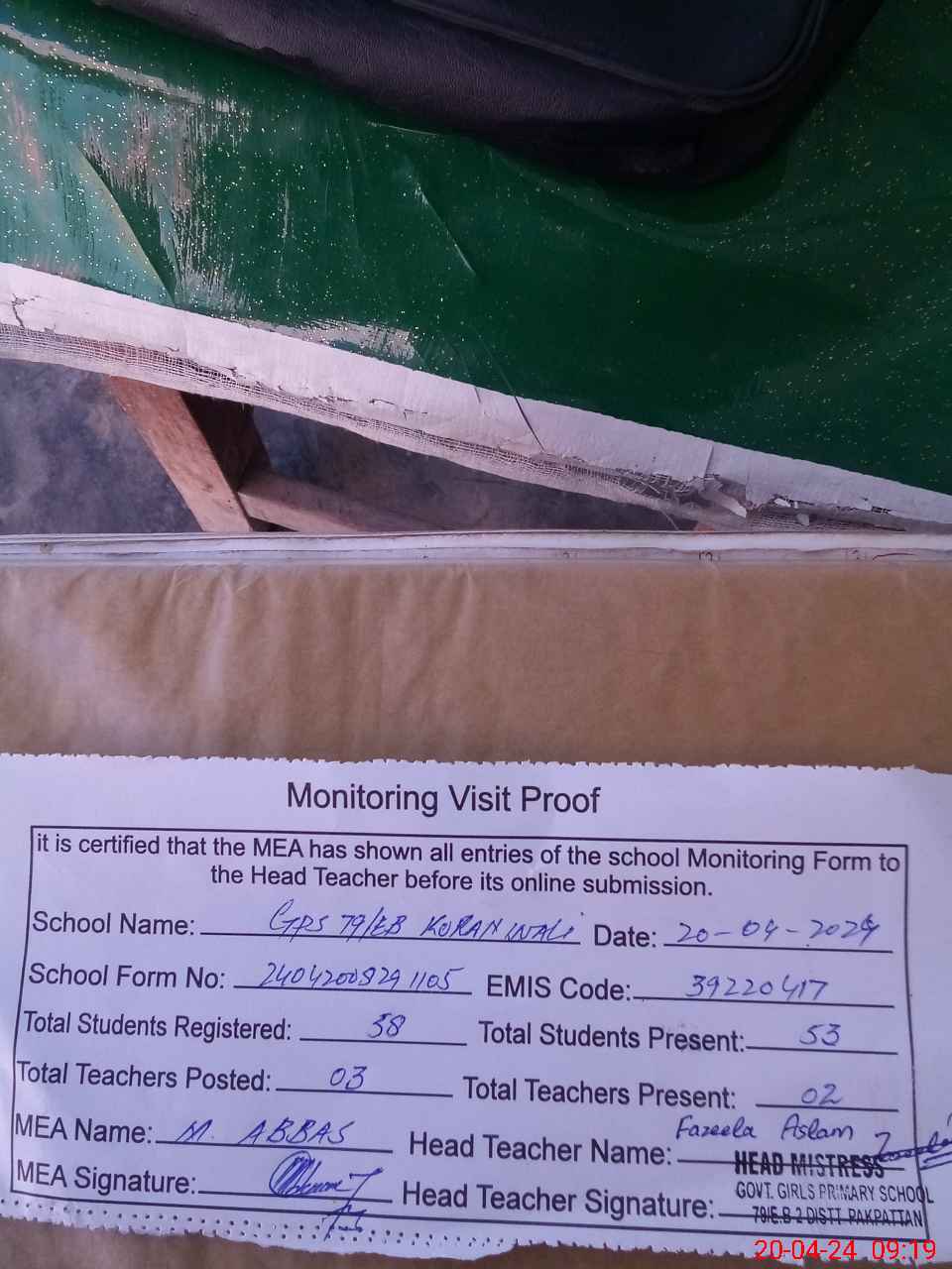 | EMIS Code: 39220417 | Name of School: GGPS 79 / EB NO.2 KORAN WALI BASTI P.O 69 EB | |||