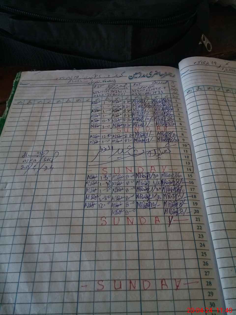 | CNIC | Full Name | Designation | R/C | Absence During Last Calender Month |