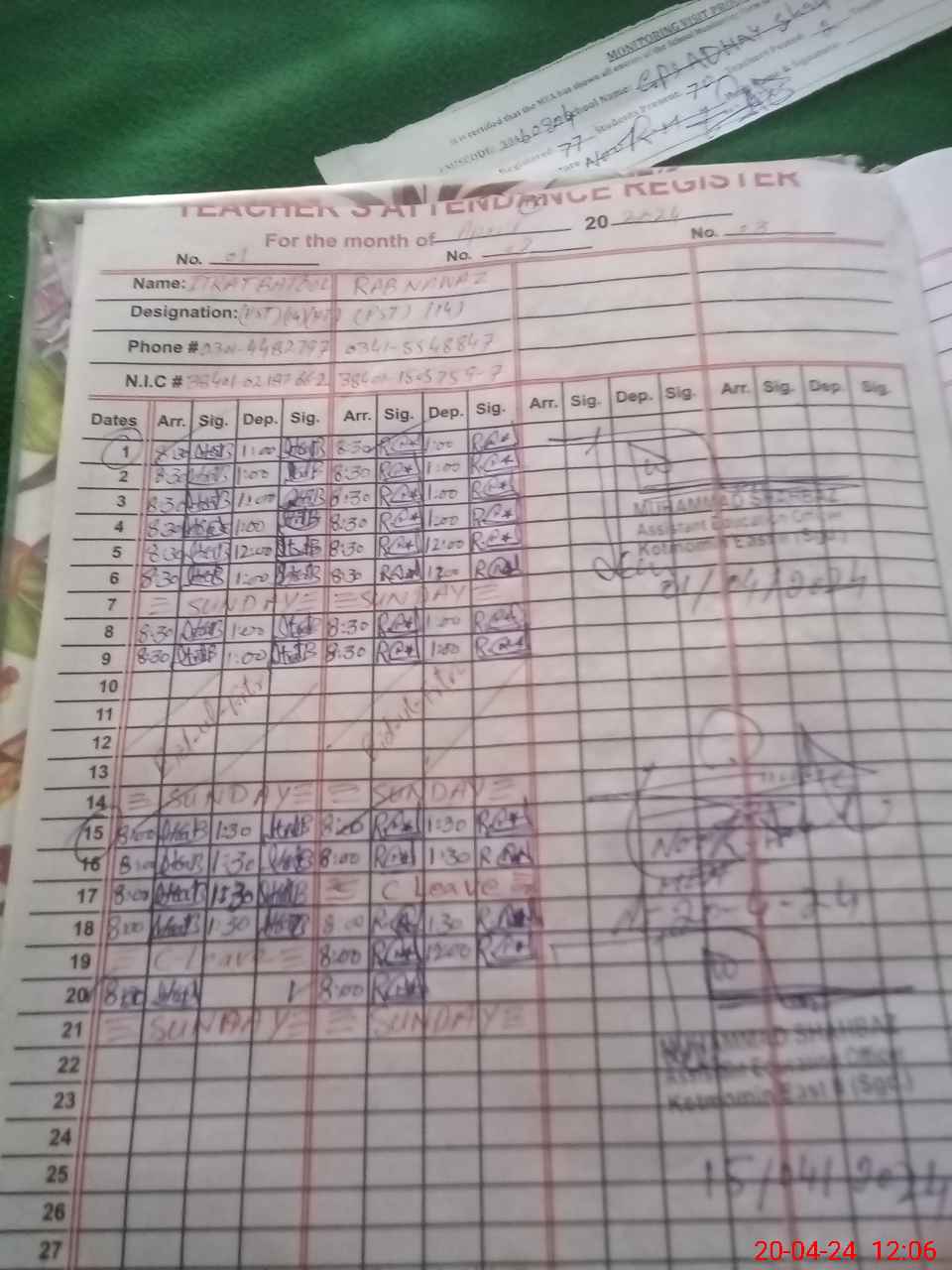 | Name: IT**** BA**** Designation: (School Headmaster's/Headmistress's) PST Phone/Cell Number: 03**** |