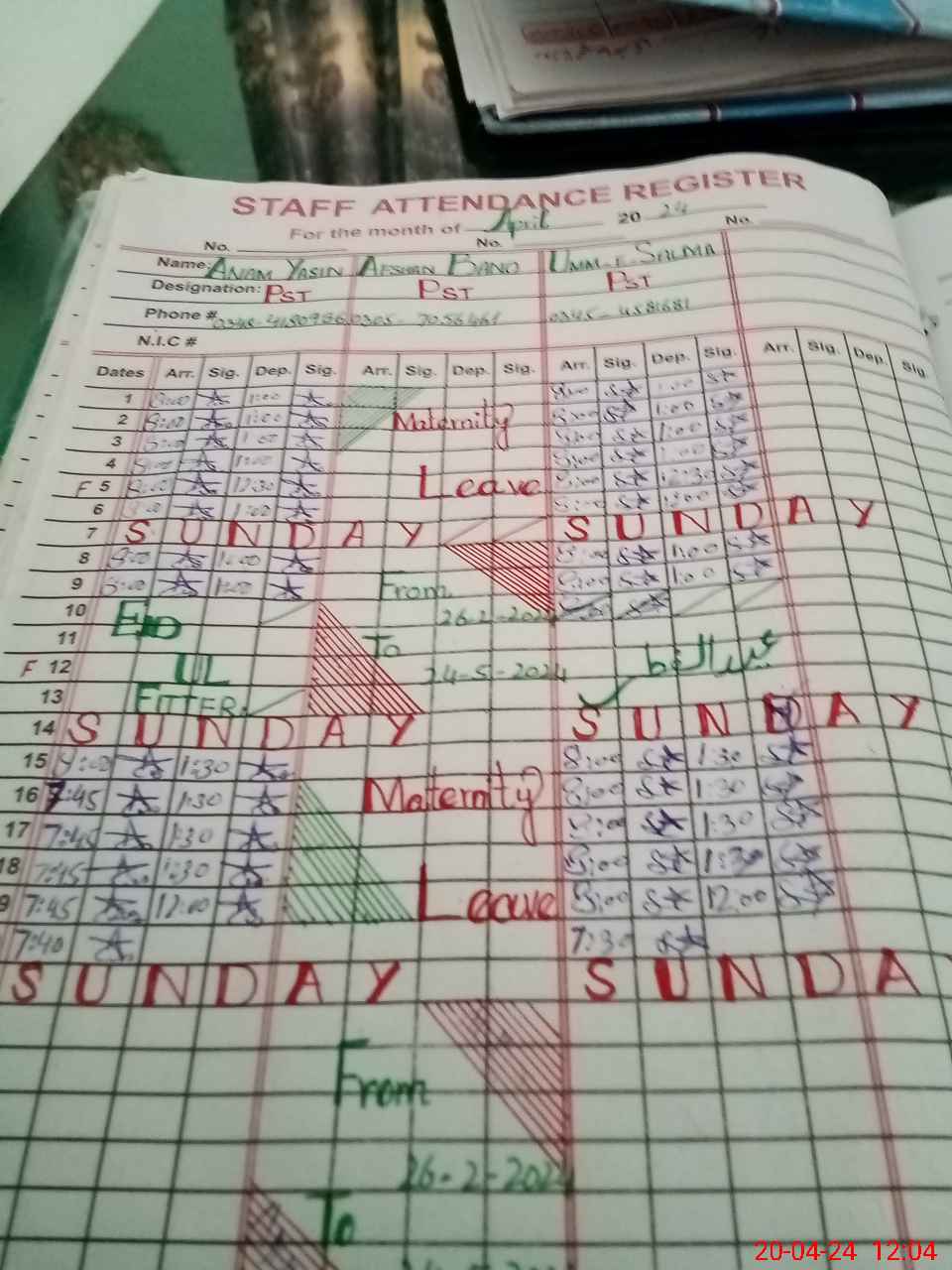 | 35**** | Af**** Ba**** | PST | Regular | 30 | 0 | 0 | 30 | 0 | 0 | 0 | 0 | 0 | Maternity |