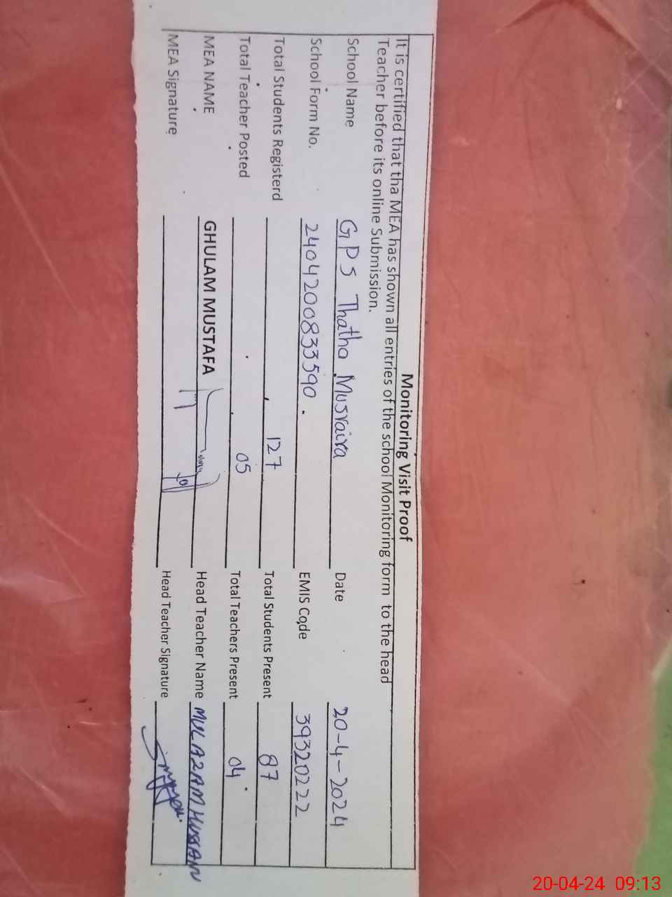 | EMIS Code: 39320222 | Name of School: GPS THATHA MUSRAIRA | |||