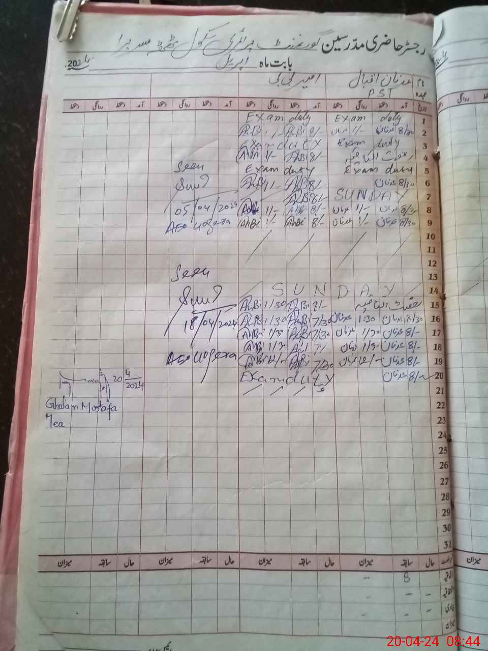 | Name: Mu**** Hu**** Designation: (School Headmaster's/Headmistress's) PST Phone/Cell Number: 03**** |