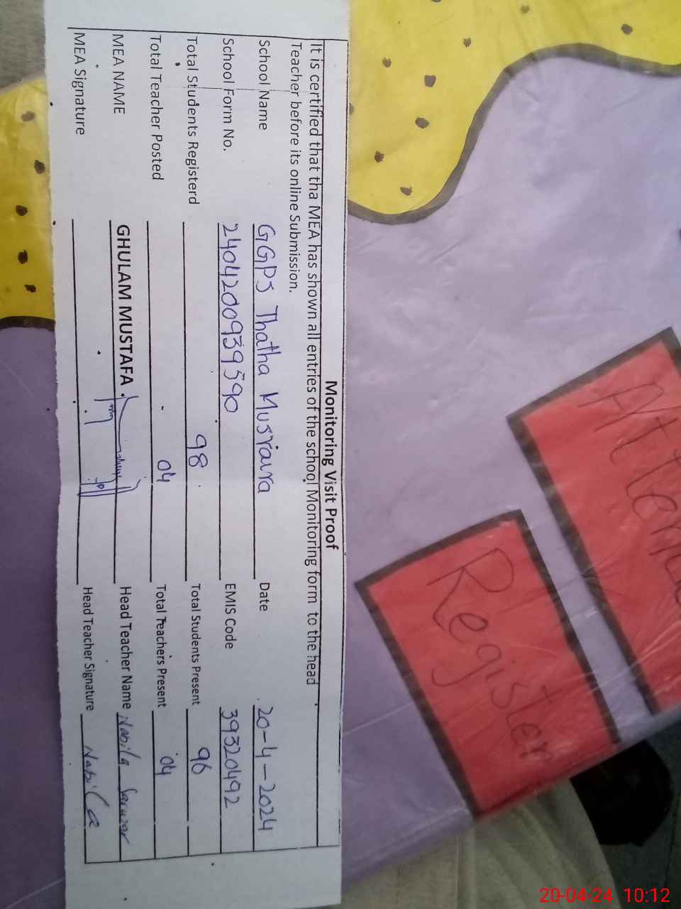 | EMIS Code: 39320492 | Name of School: GGPS THATHA MUSRERA | |||