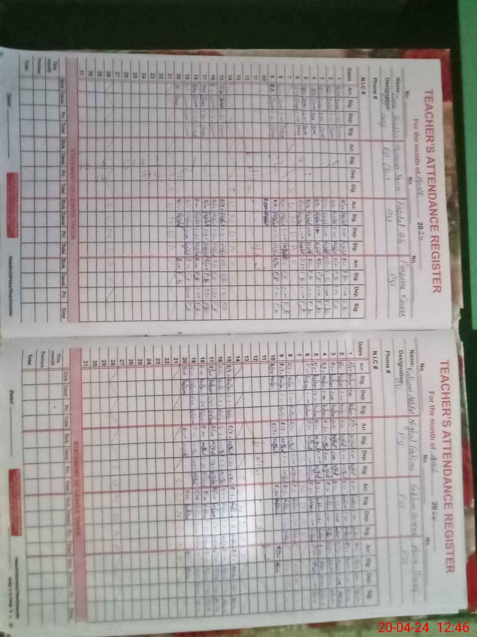 | CNIC | Full Name | Designation | R/C | Absence During Last Calender Month |
