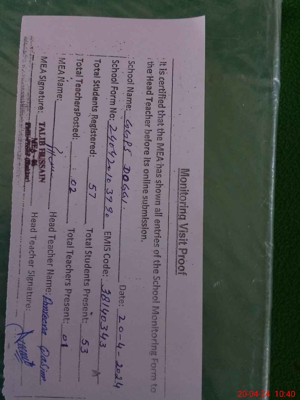 | Certified that this School was Inspected by the Undersigned MEA/DMO Today and the Information Stated Above is as Per Record. | |||||
