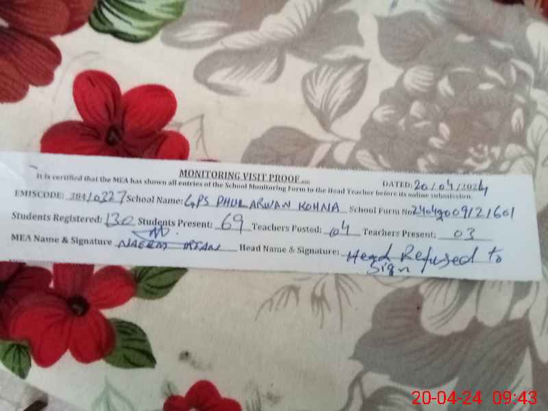 | EMIS Code: 38410327 | Name of School: GPS PHULARWAN KOHNA | |||