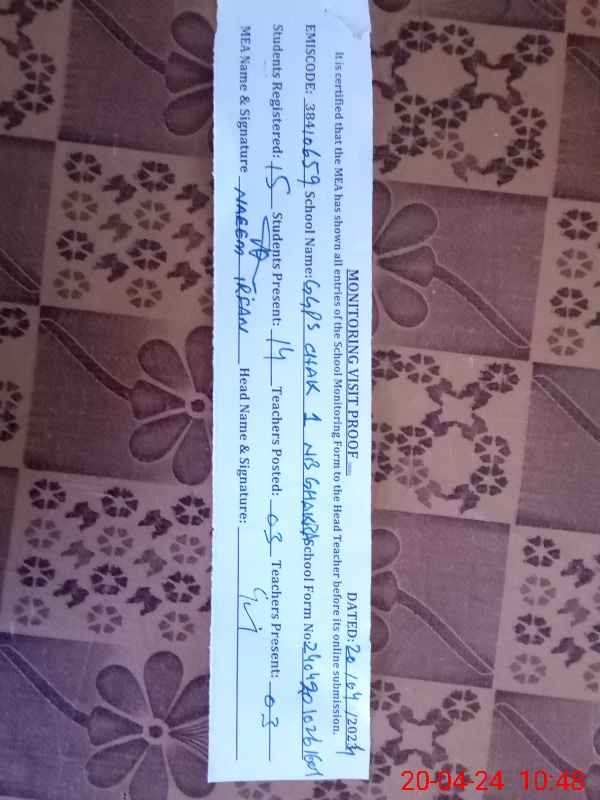 | EMIS Code: 38410659 | Name of School: GGPS CHAK NO.1 NB GHAKRA | |||