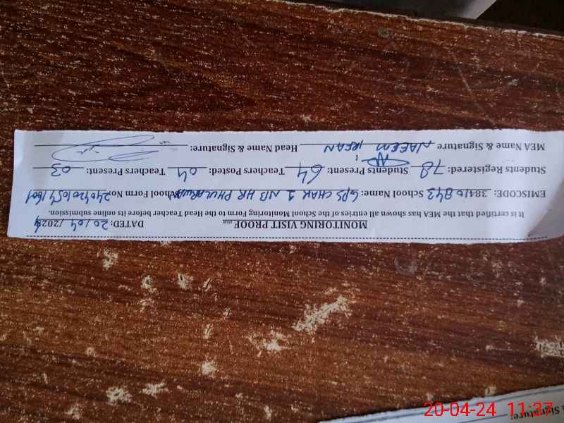 | EMIS Code: 38410843 | Name of School: GPS CHAK NO.1 NB HAYAT ROAD PHULARWAN | |||