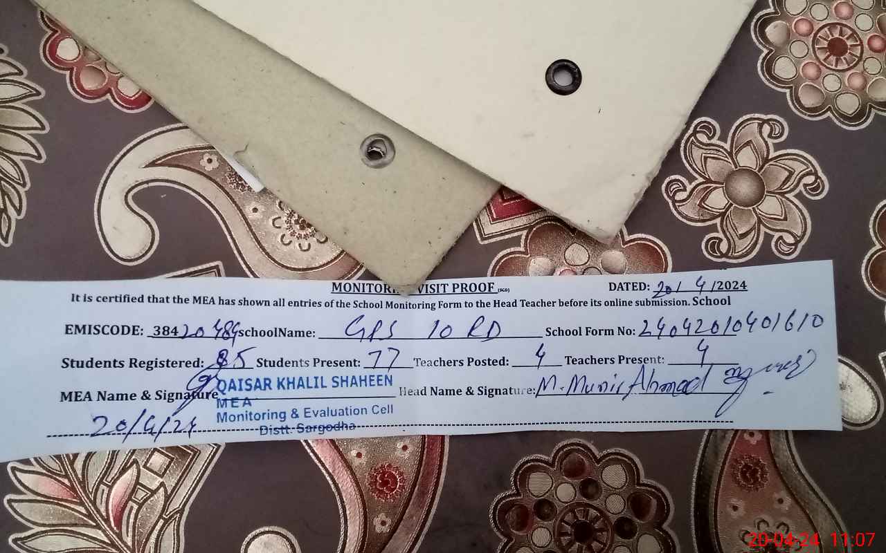 | EMIS Code: 38420484 | Name of School: GPS CHAK NO.10 REMOUNT DEPOT | |||