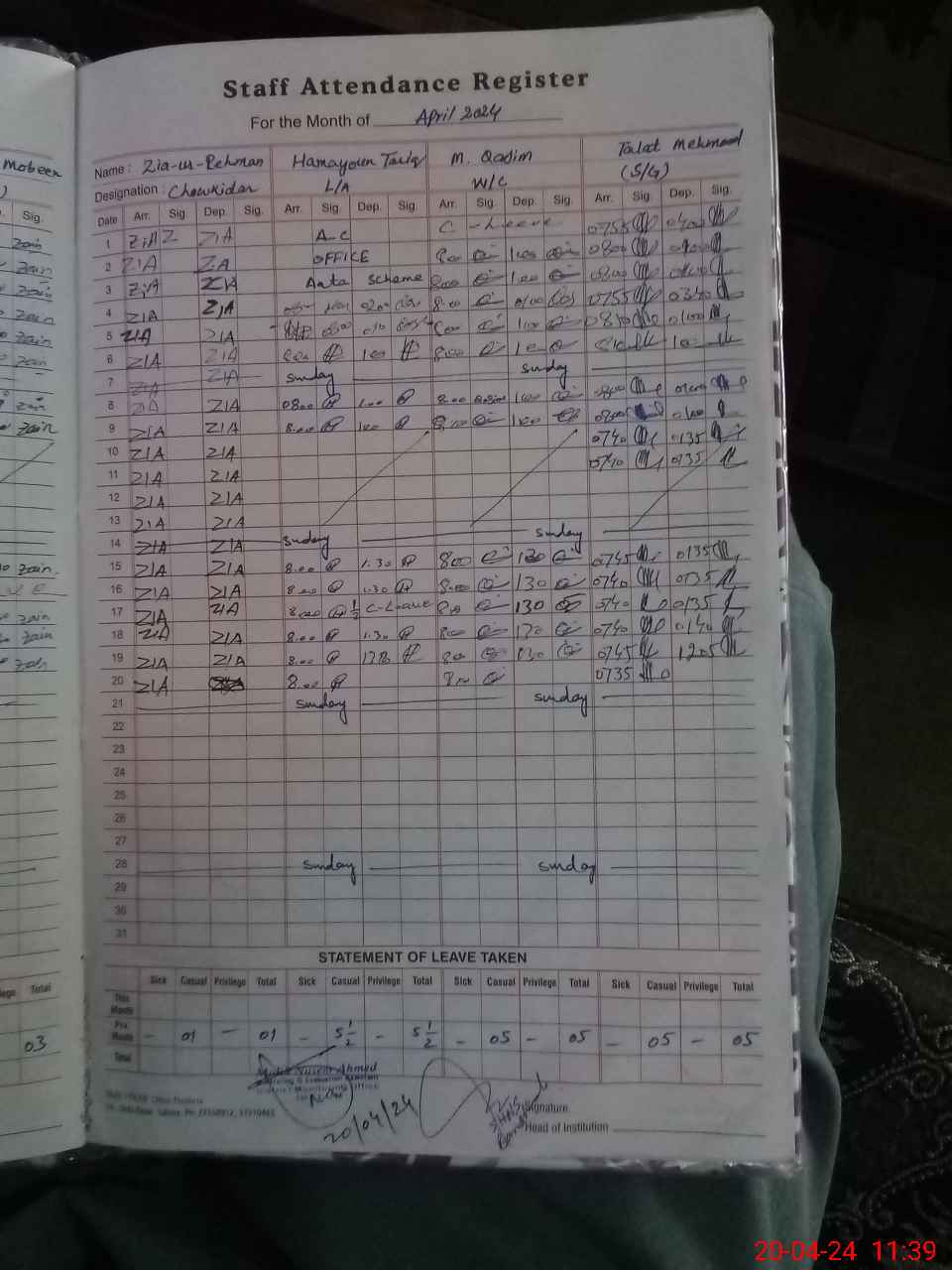 | 37**** | Ha**** Ah**** | 6 | 2 | 0 | 0 | 0 | 0 | 0 | 0 | 0 | 0 | 0 | Absent (Un-Authorized) |