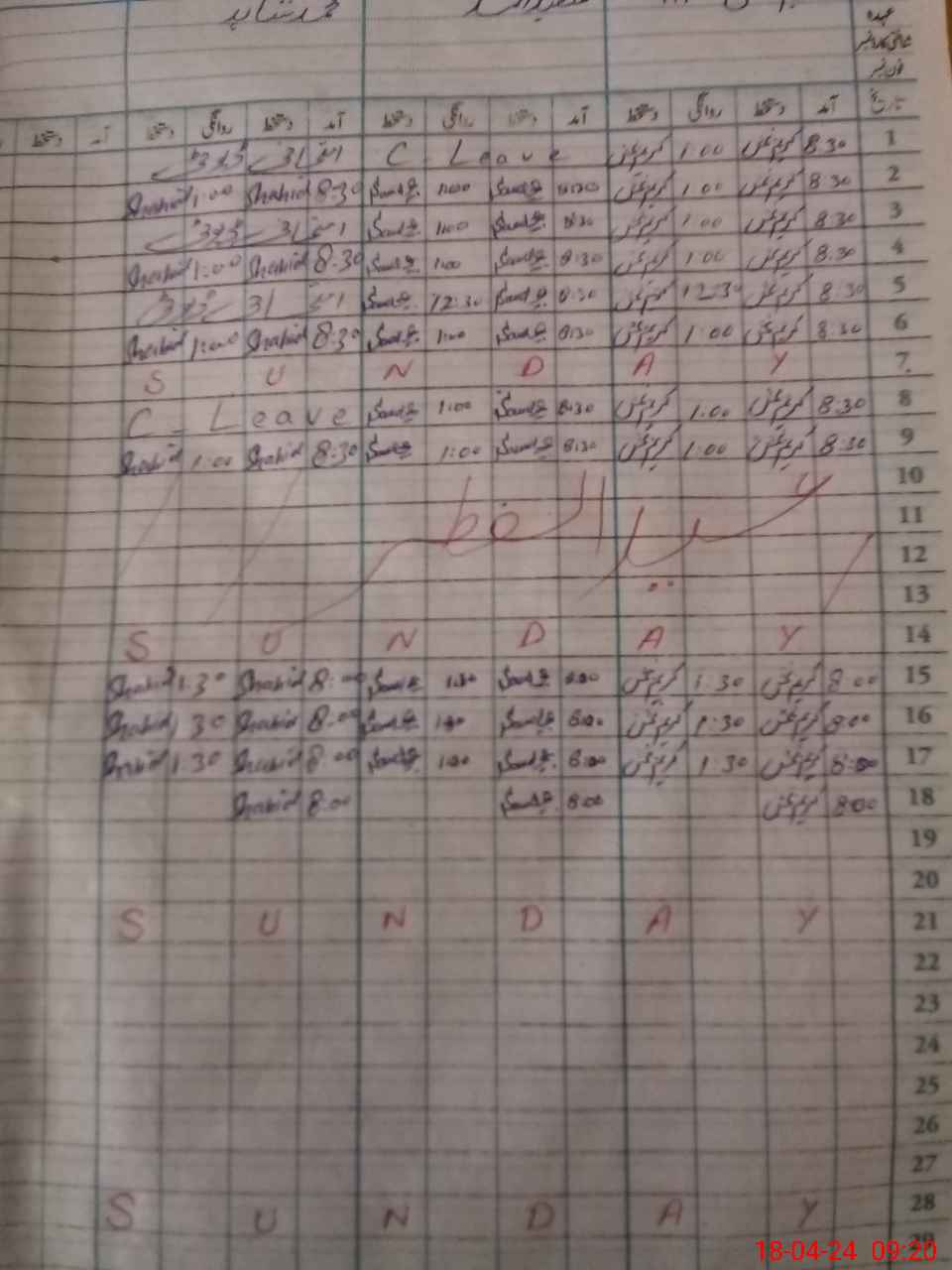 | CNIC | Full Name | Designation | R/C | Absence During Last Calender Month |