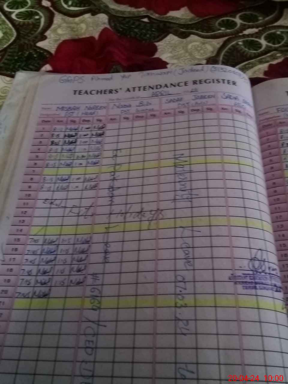 | Name: MI**** NO**** Designation: (School Headmaster's/Headmistress's) PST Phone/Cell Number: 03**** |