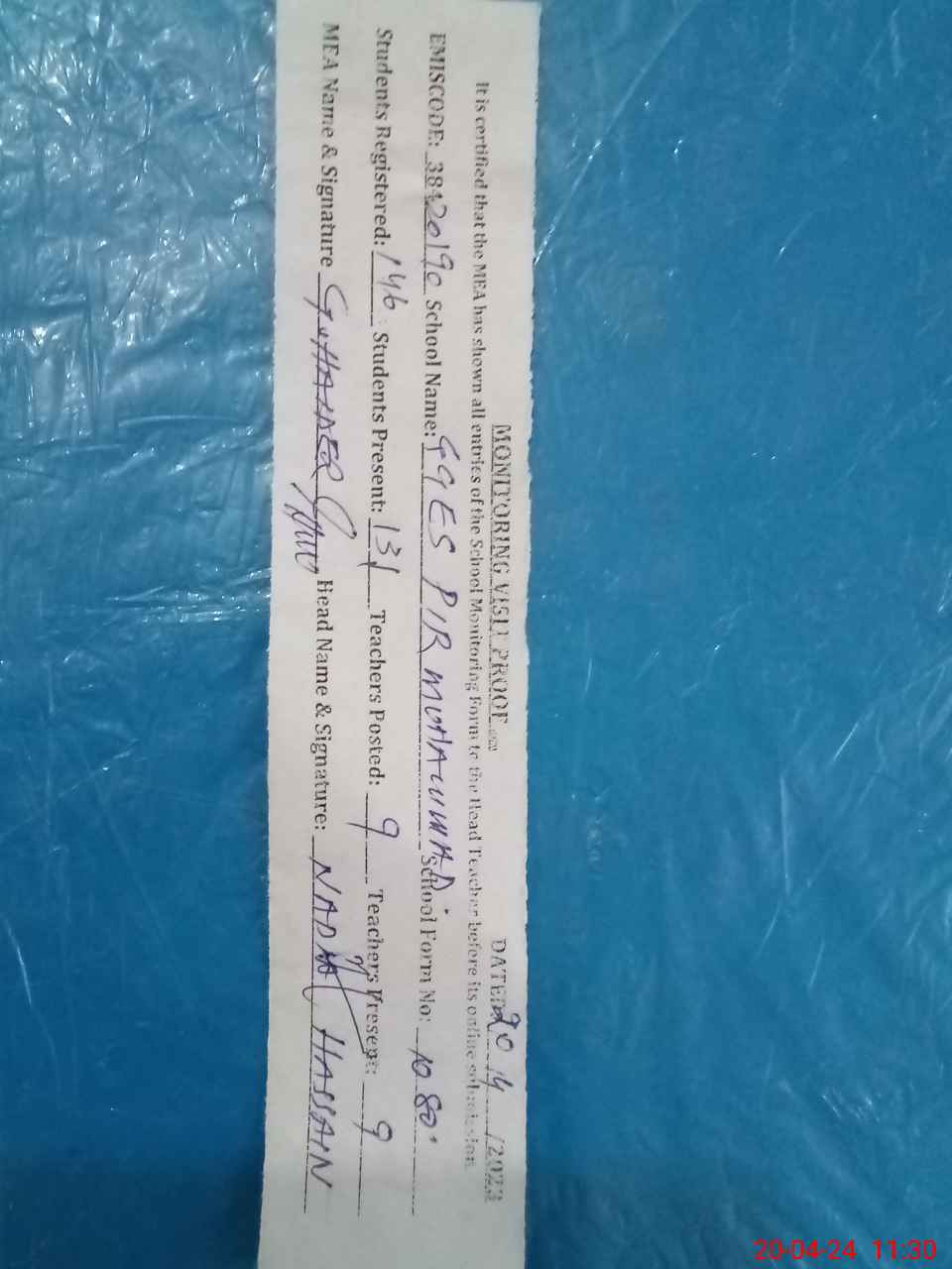 | EMIS Code: 38420190 | Name of School: GGES PIR MUHAMMAD COLONY | |||