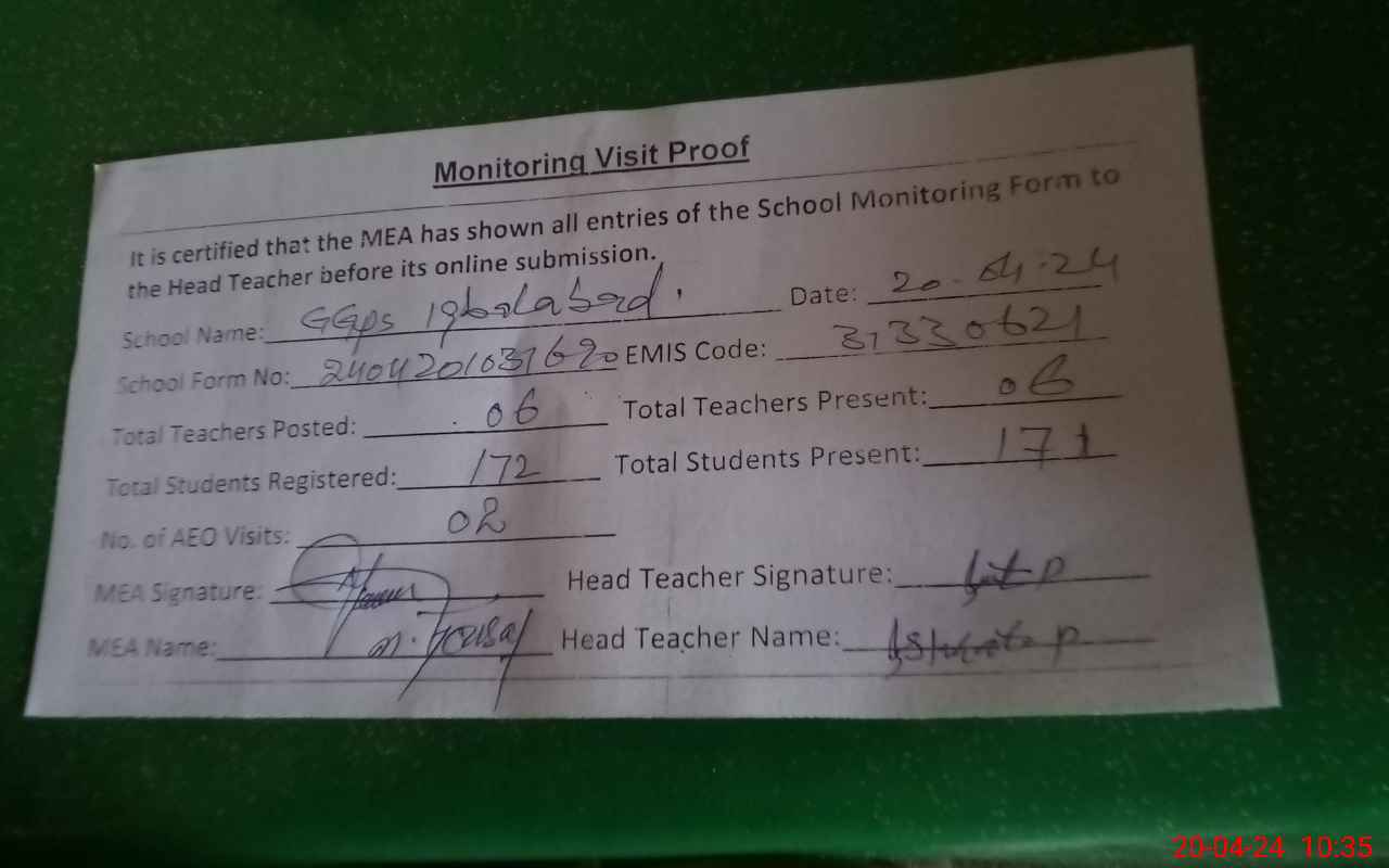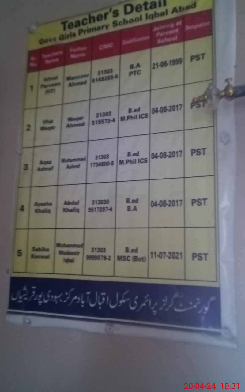 | EMIS Code: 31330621 | Name of School: GGPS IQBAL ABAD | |||