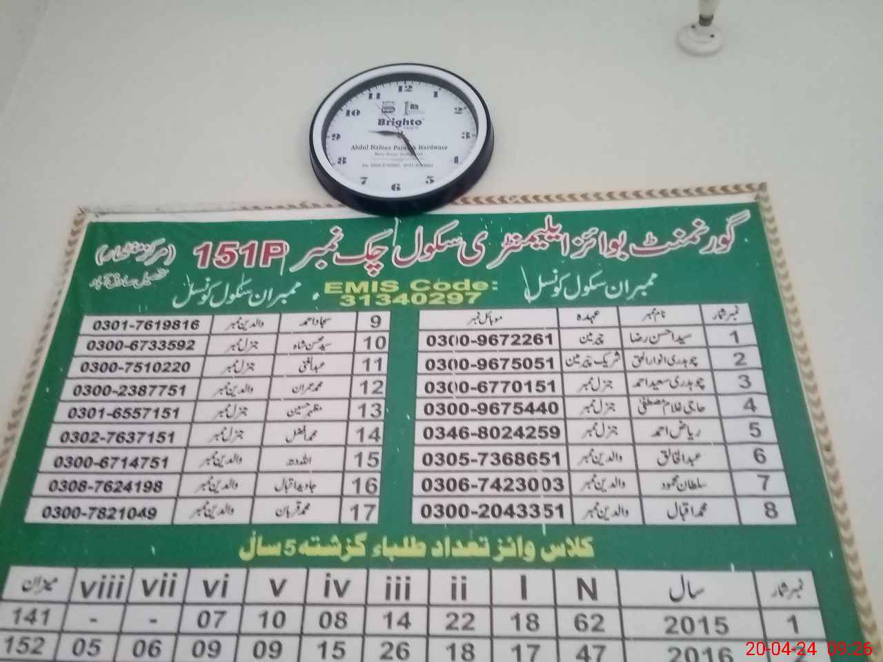 | EMIS Code: 31340297 | Name of School: GES CHAK NO 151/P | |||