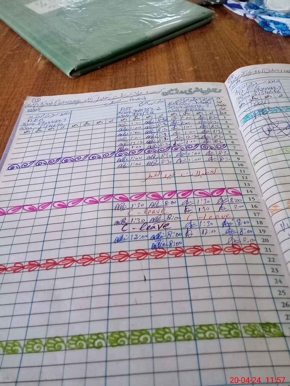 | Leave | Duty | Absent | Maternity | Medical | Ex- Pak |